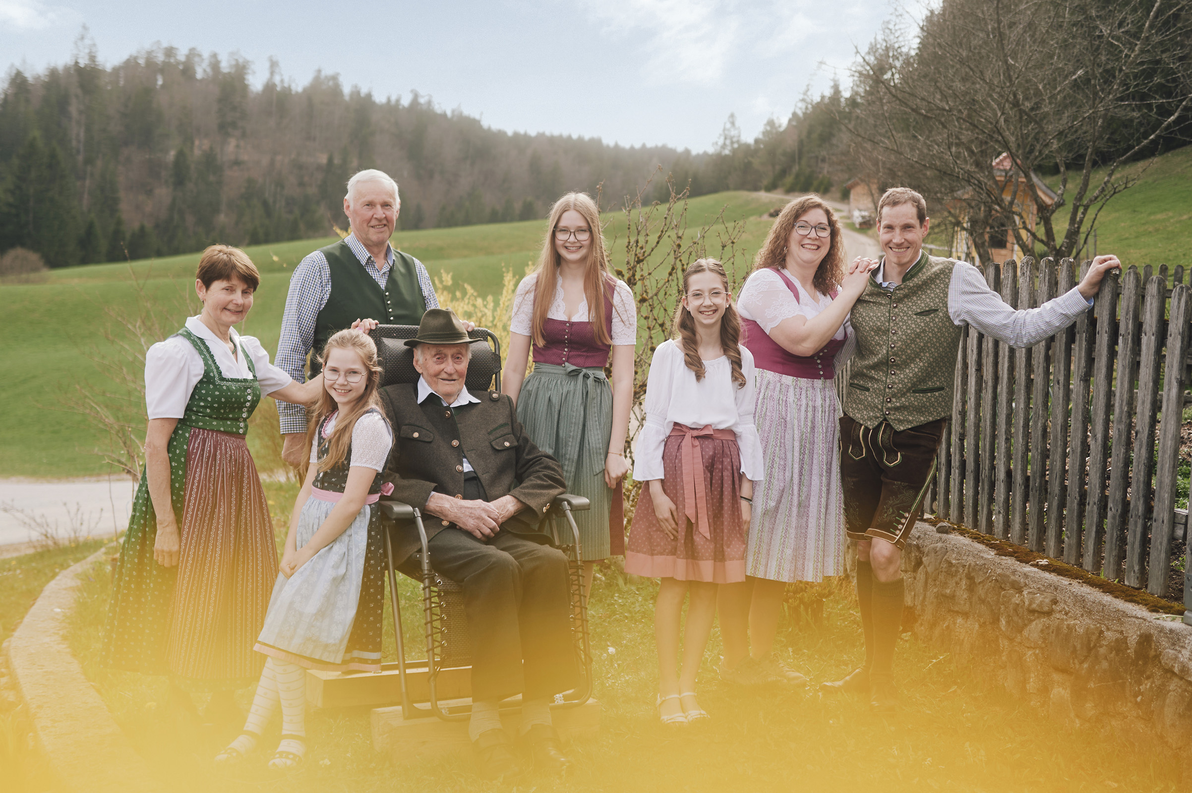mitte v.l.: Urlioma Anna (V2019) und Urliopa Engelbert (1926) der trotz seines Alters noch etliche Aufgaben über hat