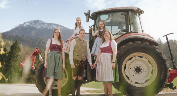 hinten v.l.: Peter (1959) und Herta (1961) haben den Hof bis Ende 2019 vorbildlich geführt; Angelika (1987) und Peter jun. (1988) dürfen den Betrieb gemeinsam weiterführen, Juliane (2016) die Kleinste in der Familie