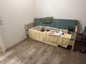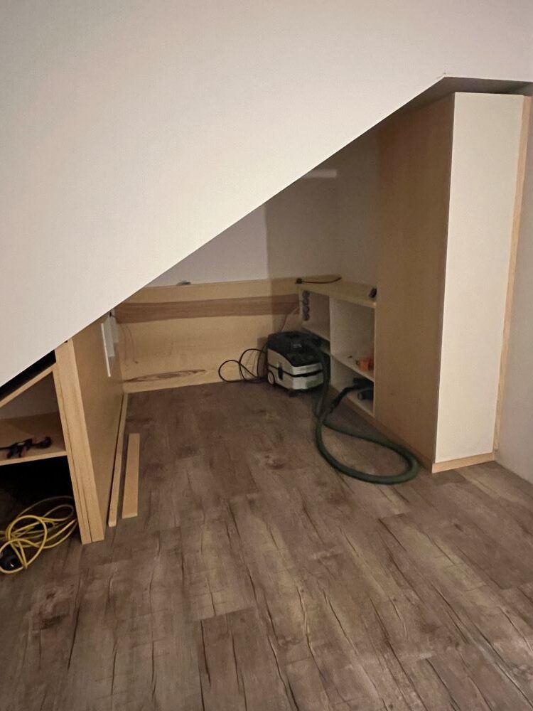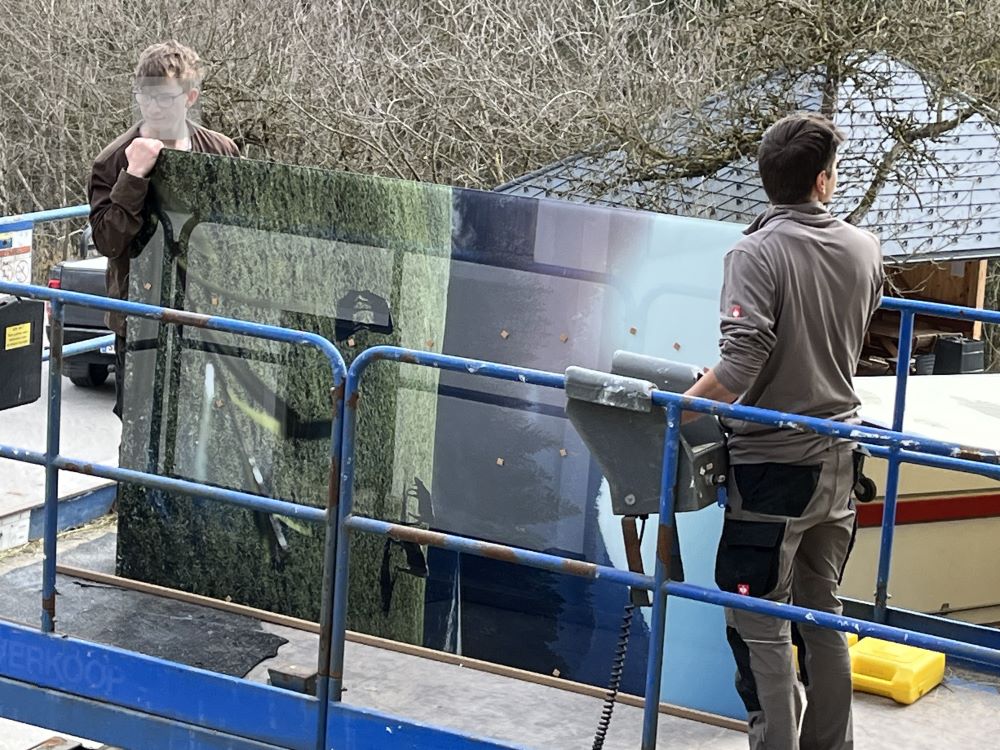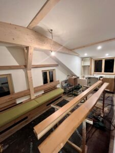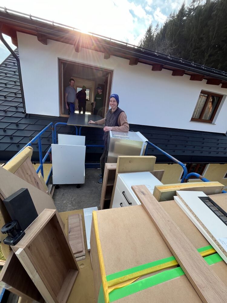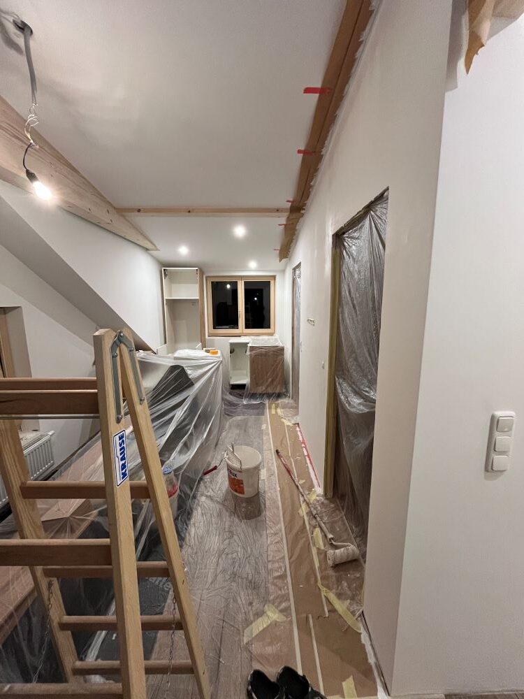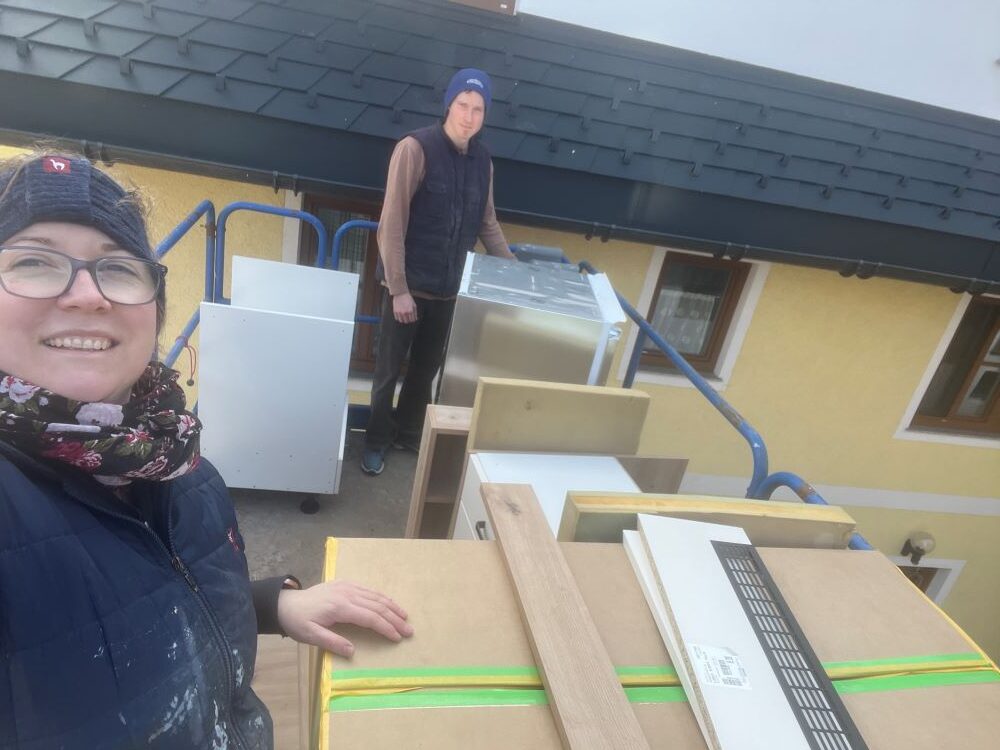 Es geht jeden Tag rund, nach dem Fußboden gleich die Möbel, dazwischen bei Nacht und Nebel hab ich noch schnell eine Wand gestrichen und auch unsere Glaswände sind geliefert worden